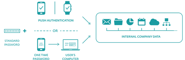 De authenticatie-opties omvatten push-authenticatie, evenals het genereren en afleveren van eenmalige wachtwoorden via de mobiele app. De app is gebruiksvriendelijker dan oplossingen met hardware- tokens of apparaten.